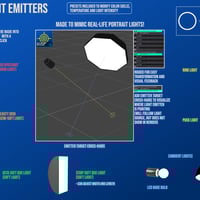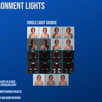 HDRI environment lights are grouped by number of light sources, and provide either a good starting point for low-light background lighting, or a strong specular highlight to reflect off the eyes or as a rim/kicker light behind your character. These are designed to be used with the included light emitters.