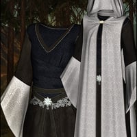 These detailed textures for the 3D Elven Dress for Genesis provide two subtle and mysterious styles for fae who work by night, guarding their people from dangerous magic.