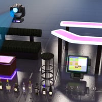 Friday night and the lights are low, the best place to go is the Nightclub. The set comes with volumetric stage lights, a bar setup with 8 different alcohol bottles and 6 different glasses and various other props including bar register, sofa, table, etc.