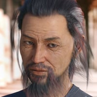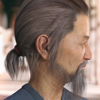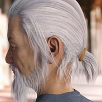 Nikan Hair and Beard are morphing, polygonal models of men's hair tied back in a short ponytail, and a medium length beard. The hair and beard sections have articulate rigs consisting of 5 custom bones for the hair, and 5 custom bones for the beard. Along with the style and movement morphs, ERC pose control dials help fit your figure poses beyond the 14 sample poses provided. The hair and beard are fitted for Genesis 3 & 8 Male(s) with auto-conforming custom morphs for Daz Original characters.
