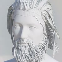 - Smooth base geometry, hair ~67k quads, beard ~27k quads