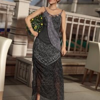 Don't miss these two gorgeous 3D texture sets for Corvidae Dress for Genesis 2 Female, which includes a black lace version, a purple brocade versions and options to take the wrap off and to make the dress shorter!
