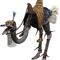 Ride proudly in to battle with this fantasy armor set for Noggin's Poser Ostrich. The set consists of a stylish helmet with chain-mail neck guard and decorative plume, a saddle and stirrup set, bladed shin and thigh guards and some reigns to steer your Ostrich to the heart of your enemies army.