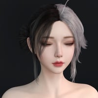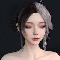 This hairstyle features a low bun adorned with striking dual-tone shades, creating a sophisticated contrast that adds depth to your character's appearance.