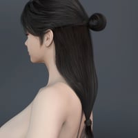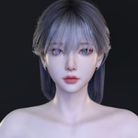 This hairstyle is a flawless blend of traditional and modern aesthetics. The delicate bangs frame her face with a soft, feminine touch, while the half-up bun adds a hint of classic elegance. Whether paired with a shrine maiden's attire or a chic evening gown, this hairstyle enhances her every look with a unique charm, bringing an extra layer of sophistication to your creations.