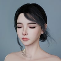 Soft side bangs frame the face gently, while a half-up knot mimics a lotus bud in repose.