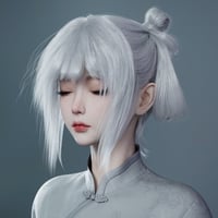 This hairstyle blends classical Eastern aesthetics with a subtle fantasy touch, making it suitable for Chinese-style, oriental fantasy, or elegant character designs while maintaining a clean and refined look.