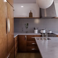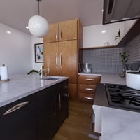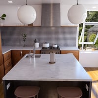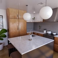 This warm, wood-clad kitchen combines contemporary details with the roots of this space, but don't worry - that doesn't mean every single piece feels like the 50s or 60s.