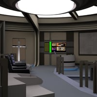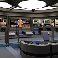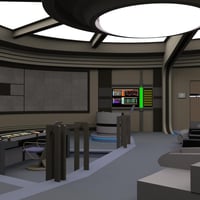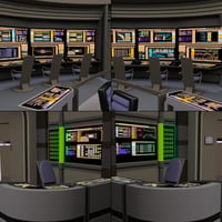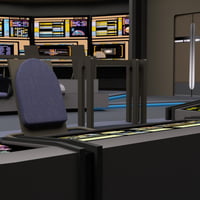 The rear stations can be reconfigured to display any of the ship`s functions. Three chairs on the left and three chairs on the right allow crew members to access the ship functions.