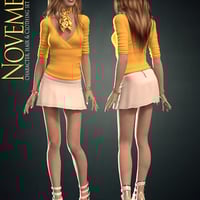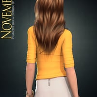 November for Victoria 4 is a fully inclusive figure pack. Including a custom character, textures, conforming hair, clothing and poses - this set gives you everything you need to recreate this stylish lady. The clothing supports several Victoria 4 full/partial morphs and adjustment morphs, and can be mixed and matched with other clothing items. The multi-layered hair is square mapped so it can take any flat hair textures (like most 3D Universe ones)
