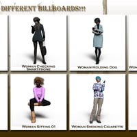 There are also great scripts to make these billboards easy to use! There is one script to turn the billboards to face the camera and another script to change billboard figure angle based on horizontal and vertical orientation. Finally, there is a script that pushes your billboard directly away from your camera view or pulls it towards you.