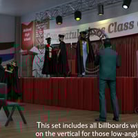 It's time to graduate, and you wouldn't want to do that alone! Introducing Now-Crowd Billboards Graduation Day. Fill your scene with graduates and family and make it an occasion to remember. The included billboards are high-quality, easy to use, and light on resources - the perfect backdrop for your graduation day renders.
