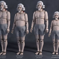 A dialable projection morph helps with fitting clothing over the carved mechanical body. Troublesome limbs can also be hidden in the scene tab.