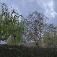 Old Victorian House Trees includes Creepy Old Willow Trees and Large Oaks, nine in total, with 3 bark and leaf colors to choose from. The polygon count is 351892.