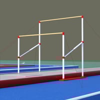 Each apparatus follows the official dimensions and norms from the FIG (Fédération Internationale de Gymnastique).