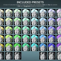 This product includes 12 hues in 5 saturation levels for a total of 60 color presets - perfect for anime/cartoon, fantasy, or punk characters!