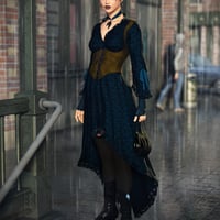 Dress the 3D Genesis female in modern Goth style with this appealing collection of clothing, including dress, boots, stockings, gloves, necklace, earrings, corset and purse.