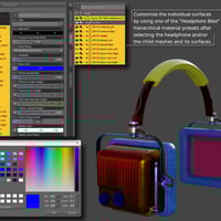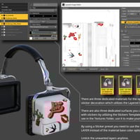 The product comes with eight different color variations and a sticker option, but you can use your own stickers based on the provided template. The stickers are loaded into the LIE system of the Base Color and the Metallic (Sticker Mask) of the Earcup material, use the Color Layer in the LIE panel to modify the color beneath the sticker.