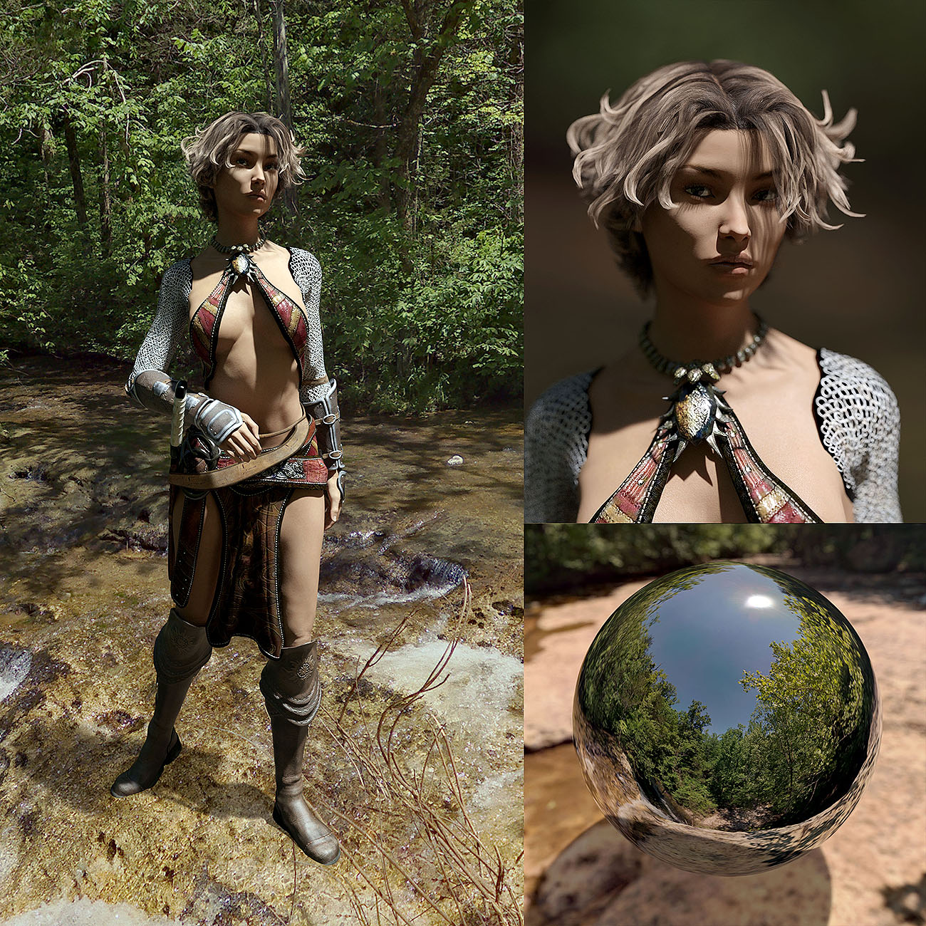Also included are two cameras per background, one for full figure shots and one for portraits with depth of field, to help you get started.