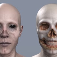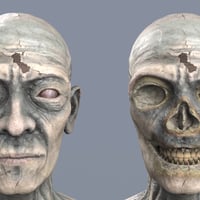 Each ear can be smoothed away, the nose pushed in to look missing, a 'thin face' shape to pull the mouth area in, and another shape to recess gums.