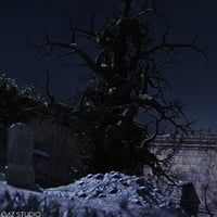 Presenting a small, but detailed walled graveyard complete with shrubs, ivy, graves & vine-laden dead tree.