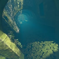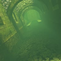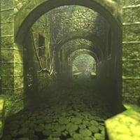 A richly detailed environmental depicting an arched stone culvert reclaimed by nature.