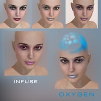 Get original, get creative, do it easily, and expand your Oxygen texture/shader library in a few very easy steps. Infuse is an incredible make up package that was created by very carefully selecting parts of the underlying head texture, and enhancing and infusing them with color, so that the result is a very natural, detailed make up. Airbrushing takes texture detail away, Infuse brings it back in technicolor.