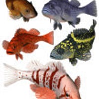 Put color in your ocean scenes with the Pacific Rockfish Collection! Rockfish belong to the genus Sebastes, which is Greek for magnificent-- so named because they include some of the most colorful fish in the ocean. The Rockfish Collection includes 10 detailed texture maps to represent 10 different species, so you get ten fish in one. The model is fully poseable, and there are morphs for the tail, fins, and head for natural, realistic posing.