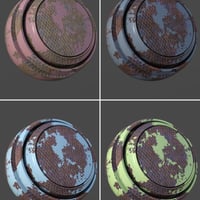 Each surface showcases a smooth paint layer brushed over rugged, worn metal—complete with authentic scratches and weathered detail.