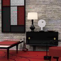 The cabinets, trays, rug, couch, bottle, lamps, tables and art in Palm Springs Decor all come with multiple Material options so you can customize them for your scene!