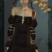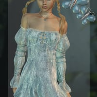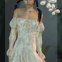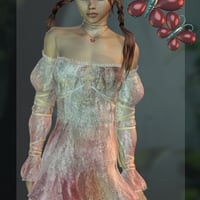 In the late Summer meadow the butterfly dreams... of soft flowers, gentle breezes, and the beautiful things that bring joy to her little butterfly heart. You can bring a little beauty into the world yourself with this soft and pretty outfit for V4/A4/S4. Includes dress, sleeves, pendant, and butterfly jewelry prop. Dare to dream!