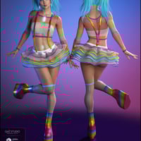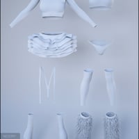 An 8 piece clothing set comprising of a Top, Tube Top, Tutu, Panty, Suspenders, Leggings, Boots and Leg Fluffies.