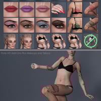 Perla HD Plus Makeup Add-Ons contains complete high-definition morphs on Perla for Genesis 9. Harness the power of HD and add unprecedented detail to your renders. This pack includes HD Shapes, makeup, and tattoo materials for Genesis 9.