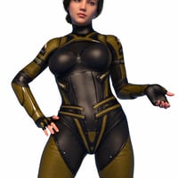 The PF Outfit for Genesis 8 and 8.1 Females is a futuristic women's combat suit. It's made of 3 materials and can be hidden or shown. You can create a variety of moods by combining the arms, legs, and torso of the costume.