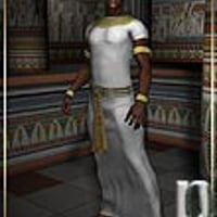 An complete Egyptian-styled outfit for Michael 3, including gown, sandals, wig and headdresses. The clothing items are packed with full body morphs, and the gown has poses to match Michael 3's default poses. Starter textures are included.