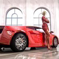 Each pose is comprised of detailed poses that can create a model-pose scene set in a super car, and the shader is comprised of presets that help realize the realistic gloss of the vehicle, even in Iray rendering.