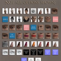 To make customizing this character easy, included are 1-click solutions for changing Shine Strength, turning Normal/Displacement Maps on and off and at 50% strength, setting her to the correct SubD level when using his HD options, and removing the LIE eyeshadow and/or eyeliner.