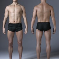 With a custom head, body, Adam's Apple, eyes, teeth, nipples, navel, HD sculpt, and even an anatomical morph, he's a definite step away from the default figure. His shape is that of a man in his prime with a swimmer’s body. His custom navel is a little lower than on the default Genesis 9, so he has an optional projection morph to address any clothing issues that might occur.
