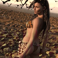 Her head and body are Zbrush sculpts, with her body built of the default Genesis 9 Feminine Base body, although Margo still looks interesting without that dialed in. Her HD options add an additional level of detail to her body, enhancing musculature and imperfections alike. Her eyes also have an HD option especially useful for extreme closeups. And there are custom morphs for her teeth, nails, and lashes. There is also a morph to neutralize the shape of her chest in case there are unwanted effects on her clothing.