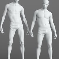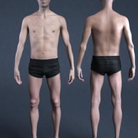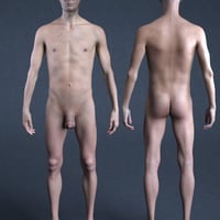 With a custom head, body, Adam's Apple, eyes, teeth, nipples, navel, HD sculpt, and more, he's a definite step away from the default figure. His figure is rangy, with knobby knees and prominent elbows. Because of his very flat chest, there is also a projection morph available if there are undesirable creases in clothing around that area. It is “off” by default and can be found easily in his character folder if a fix is needed.