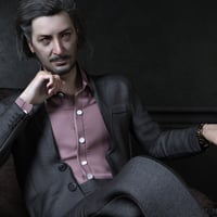 Roderick is a custom figure whose head is sculpted from the Genesis 9 base and body from the Genesis 9 Masculine base, with unique fibermesh hair and tattoo options, optimized for Iray. He uses the PBR shading system.