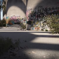 This edgy photoreal scenery, full of graffiti, abandoned concrete pillars and trash, with mother nature's own green twist is perfect for your vibrant photoshoots, cool renders and secret rendezvous or action renders.