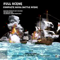 Complete Battle scene between a pirate ship and a Spanish sailboat
