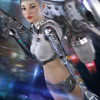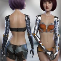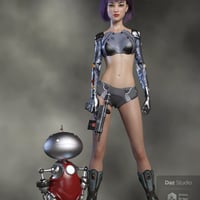 Zharien is a stylized character for Genesis 8 Female with HD cyborg arms and a human version. The HD cyborg arm morphs can also be used with your favorite Genesis 8 Female characters. Zharien also comes with both Iray and 3Delight material presets. She is perfect for all your scifi fantasy renders.