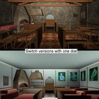 Eat out tonight! Pizzeria Italia gives your favorite characters a great new place to dine, and you can even choose the style of restaurant they eat in. Pizzeria Italia is two different pizzerias in one figure. A single dial switches from 'rustic to 'modern' versions, and instantly changes the look of the whole pizzeria. Using switching geometry and ERC, one dial links 33 body parts/props, switching them all at once. You can also switch individual body parts to mix the styles.