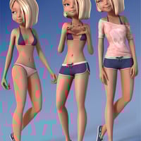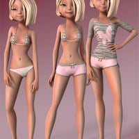 Playful for Kimberly, a premiere 3D model, is an energetic set of textures for Kimberly Clothes. Give Kimberly's wardrobe a boost of fun and playfulness with this texture add-on set. Includes three matching outfits to use in all your renders.