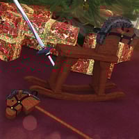 Go back to a simpler time when toys were meant to withstand hard play, and imagination carried you to unknown worlds and inexplicable adventures! Drift back to your own childhood as your kids ride, run and bounce in time to their own imaginative meanderings. Little soldiers will lead an army on this wonderful hand-crafted hobbyhorse of lustrous cherry-wood. Princesses will lead the victory parade with the rolling gait of their very own rocking horse. And both will soar to imaginative heights as they try to reach the top of Jack's Beanstalk on this quaint pogo stick. (No warranty express or implied. Use with caution. First aid may be required.)