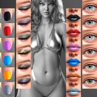 She was designed for beginners to render realistically with HDRI lights alone. Optimized for Daz Iray PBR Skin Shader with an Anatomical Element texture, 7 eye, 7 lips, 7 make-up and 7 nails options.
