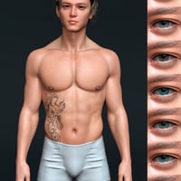 He was designed for beginners to render realistically with HDRI lights alone. Optimized for Daz Iray PBR Skin Shader with complete texture maps, anatomical elements and 7 eye colors options.