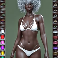 She was designed for beginners to render realistically with HDRI lights alone. Optimized for Daz Iray PBR Skin Shader with Anatomical Elements, white brows texture, 7 eye, 7 lips, 7 make-up and 7 nails options.
